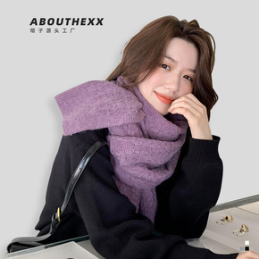 围巾女批发毛线围巾麻花围巾女秋冬季加厚针织女长款围...