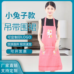 磨毛布围裙广告礼品印字 可爱卡通小兔双兜挂脖围裙厂...
