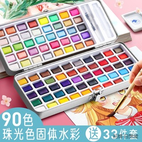 固体水彩颜料套装珠光72色儿童学生用美术生铁盒便携...