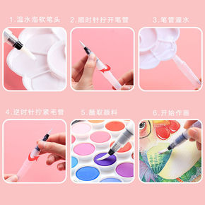 自来水笔套装6支装储水笔水彩笔固体水彩颜料水溶彩铅...