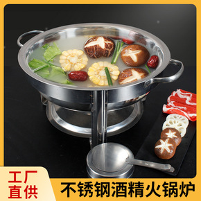 加厚不锈钢新型架传统干锅双耳可调固体酒精炉火锅汤锅...
