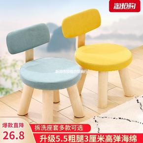 儿童实木小凳子家用小椅子靠背客厅小板凳矮凳圆凳四腿...