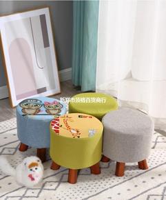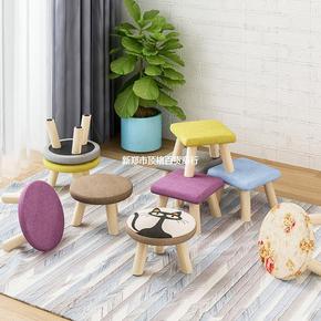 布艺小凳子家用实木圆凳可爱儿童沙发凳时尚矮凳卡通创...