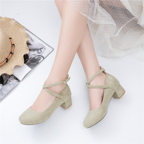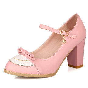 春鞋女韩版小清新时尚搭扣粗跟浅口鞋甜美蝴蝶结高跟单...