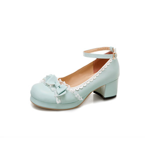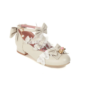 21新款浅口春秋女鞋甜美蕾丝花边蝴蝶结绊带公主糖果...