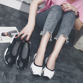 坡跟单鞋女2021春新款圆头浅口豆豆鞋PU软皮软底...