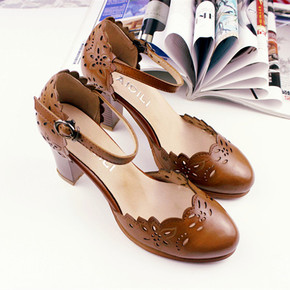 2021年春季新品外贸时尚超高跟粗跟40-43扣带...