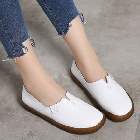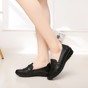 休闲时尚套脚批发护士鞋单鞋皮鞋女平底批发牛皮女鞋休...
