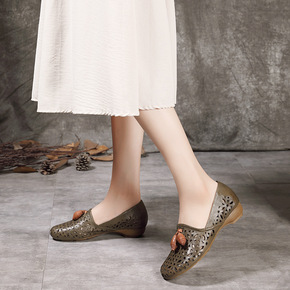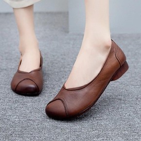 厂家直销新款牛皮女鞋休闲浅口女鞋圆头平底中年女鞋子...