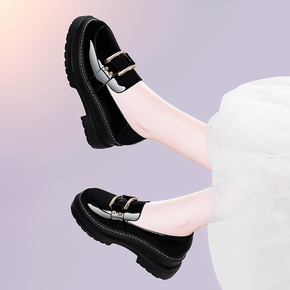 英伦风小皮鞋女2021春秋新款锯齿厚底增高一脚蹬工...