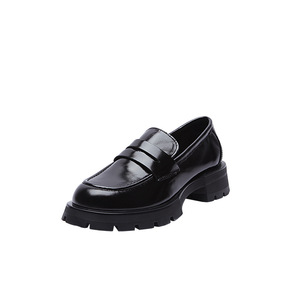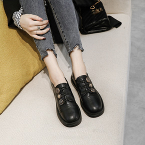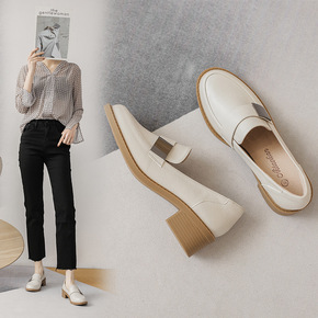 2021新款真皮超纤百搭软皮单鞋粗跟现货英伦风圆头...