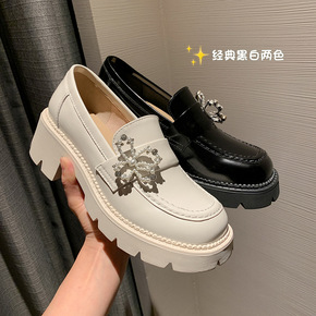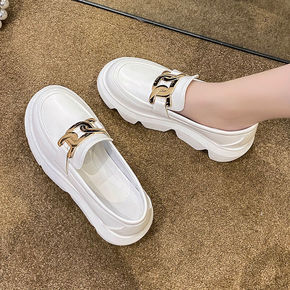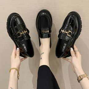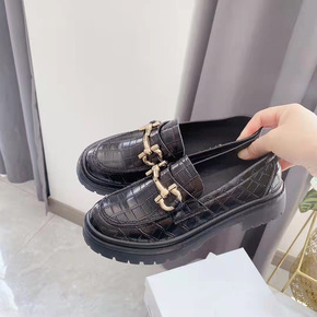 圆头小皮鞋女2021年春秋新款厚底时尚金属链条休闲...
