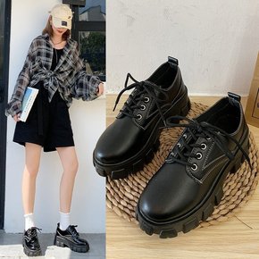 小皮鞋女2021秋季新款时尚英伦风系带坡跟厚底高跟...