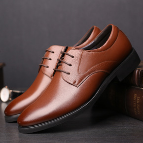 商务正装头层牛皮男鞋男士皮鞋系带新款英伦风春夏休闲...