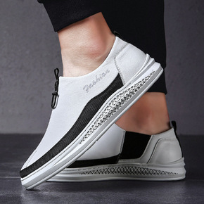 男式休闲鞋 牛皮男士男式套脚潮鞋子韩版板鞋小白鞋男...