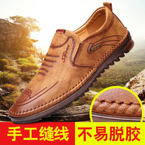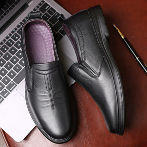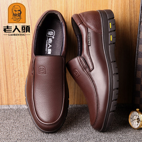老人头男士商务软面皮鞋 新款休闲鞋子套脚 耐磨真皮...