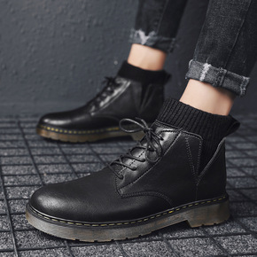 马丁靴男秋季高帮皮鞋男靴英伦风工装靴皮靴超纤短靴潮...