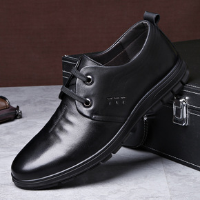老人头皮鞋男真皮秋季中老年爸爸鞋大码透气男鞋厚底商...