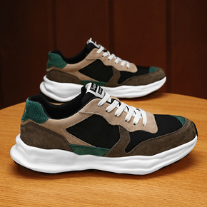 老爹鞋男鞋新款春季潮流复古运动鞋男士真皮百搭拼色休...