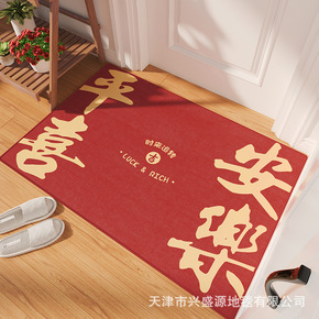 新中式入户进门防滑垫喜庆红色家用门口吸水脚垫结婚新...