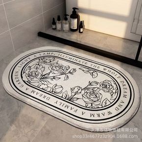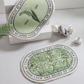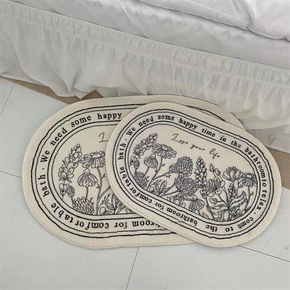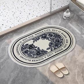 植物字母椭圆美法式防滑吸水卧室浴室床边脚地垫毯卧室...