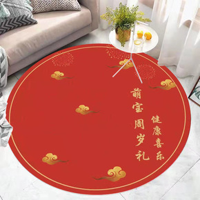 新中式圆形地毯宝宝周岁抓周红色圆形地毯红布垫子布置...