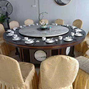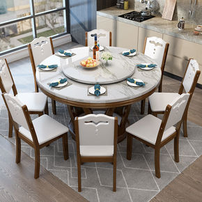 欧式大理石餐桌椅组合实木餐桌带转盘家用饭桌圆桌大理...