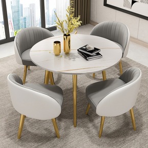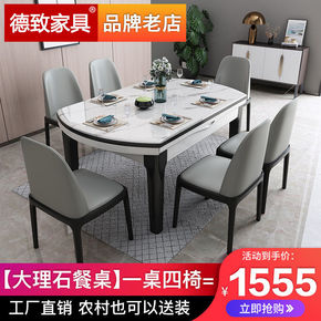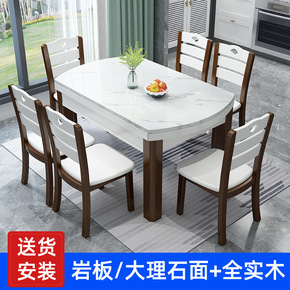 大理石餐桌1.2米圆桌可伸缩折叠餐厅餐桌岩板 饭桌...