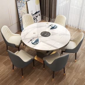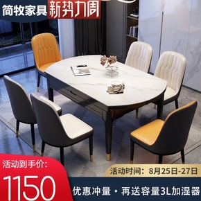 岩板伸缩餐桌可变圆桌折叠餐桌家用小户型转盘智能饭桌...
