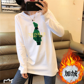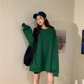 新款2021上衣秋季韩版宽松长袖带绒卫衣女学生纯色...
