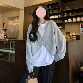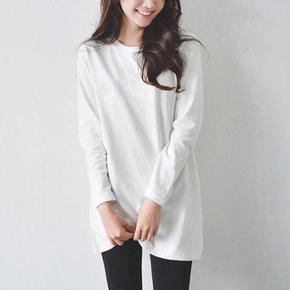 纯棉宽松衫上衣长款内穿卫衣叠搭早春洋气秋冬女长袖白...