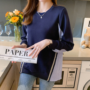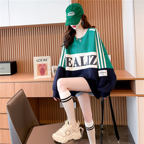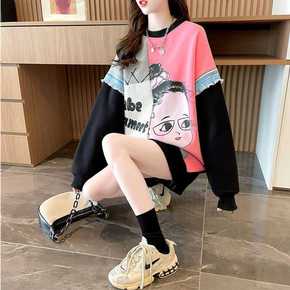 春秋装韩版学院风宽松肥大码女装薄款插色卫衣设计感百...