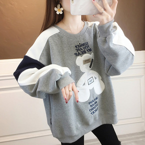 盐系趣味小熊薄款卫衣女潮ins春秋季宽松慵懒风情侣...