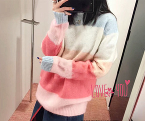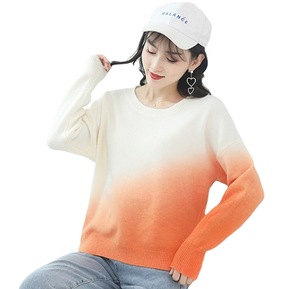渐变色吊染个性毛衣女慵懒风2021秋冬新款圆领宽松...