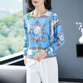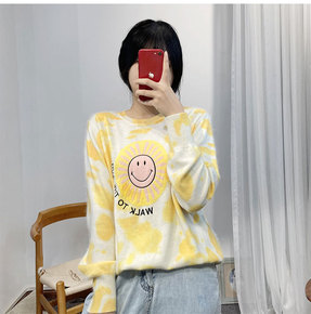 2020秋冬新款数码印花圆领长袖针织衫女套头宽松薄...