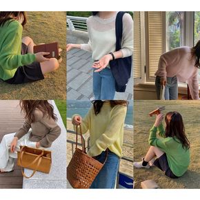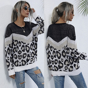 2021秋冬新款针织衫设计感拼色长袖圆领宽松上衣女...