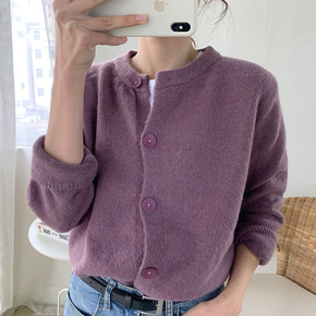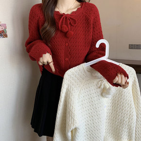 日系温柔风粗针线韩版针织开衫2021春秋季宽松慵懒...