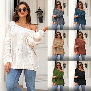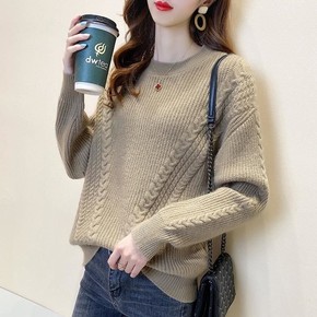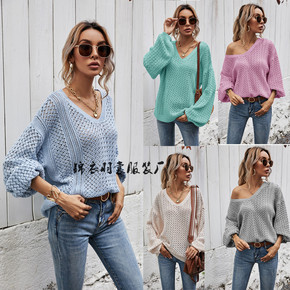2021新款春秋毛衣女v领秋冬针织衫宽松圆领打底毛...