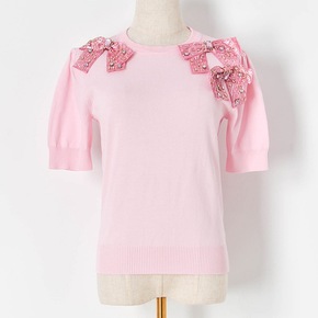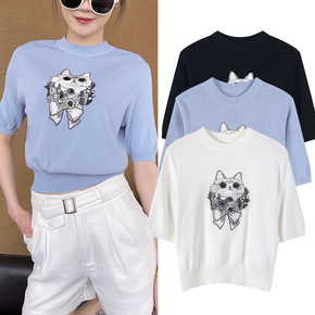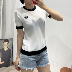 小众潮牌2022早春新款黑色贴皮十字架短袖针织衫女...