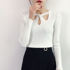 2022春夏新款修身中袖针织衫女套头毛衣内搭打底衫...