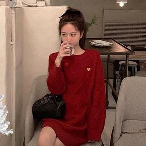 2020年新款秋冬红色毛衣女套头宽松外穿慵懒风针织...
