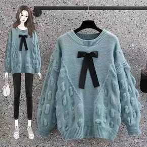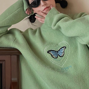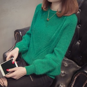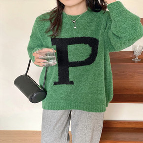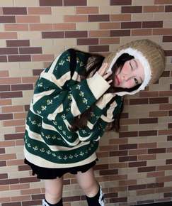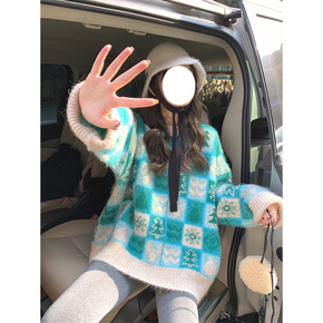 复古甜美圣诞氛围毛衣女秋冬季加厚日系慵懒风宽松绿色...