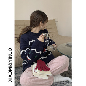 设计感小众套头复古重工提花针织加厚宽松慵懒风圣诞毛...