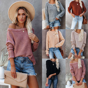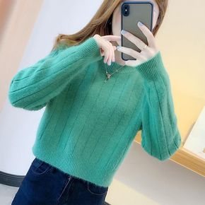 秋冬宽松套头女针织衫短款女装毛衣新款慵懒风糖果色纯...