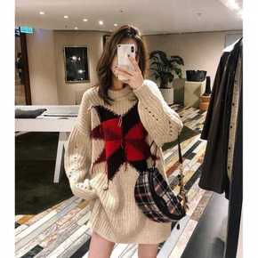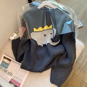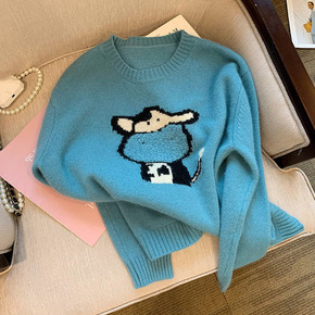 卡通趣味温柔懒慵毛衣女冬季宽松套头高JI感复古提花...