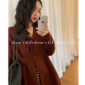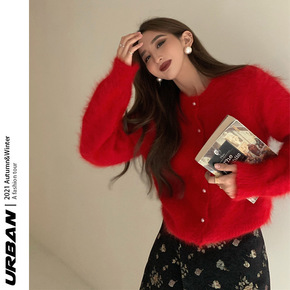 诞红色浣熊绒毛衣女高级感v领开衫2021年新款设计...