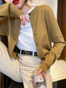 春秋季女装2021年新款针织开衫短款外套上衣女士毛...