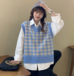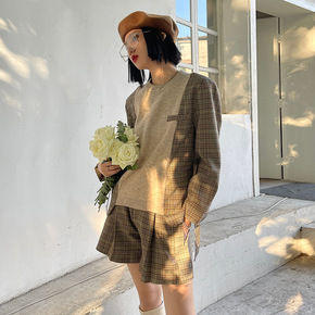 NEIHE内赫十三行毛衣拼接格子衬衣2022春季新...