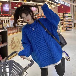 克莱因蓝毛衣秋冬2022新款慵懒风闺蜜装麻花加厚外...