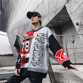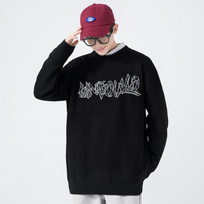 2021春秋潮牌绣花嘻哈hiphop情侣毛衣 ov...